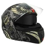 Hawk Aviator Skull Advance Dual Visor Modular Helmet with Bluetooth Sz XL