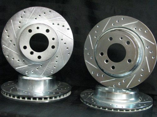 2004-2010 BMW 528/530/535 (E60 AWD) Front & Rear Brake Disc Rotors +Ceramic PadsDrilled Slotted Rotors are brand new. CnC Machined in the USA. Cross Drilling allows the discs to properly ventilated gas heat between the disc infrastructure. Slotting allows the gas heat to dissipate between the brake pad and Rotor. Discs come with an anti-rust coat. Made of Highest Quality Metallurgy. Meets & Exceeds G3000 Industry Standards.